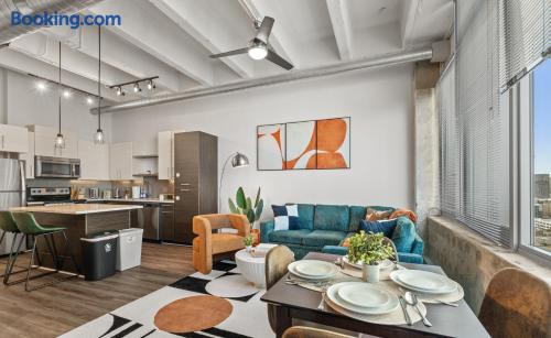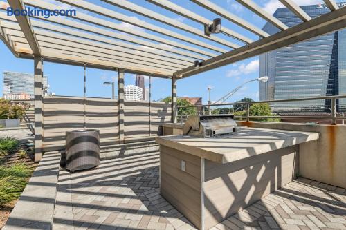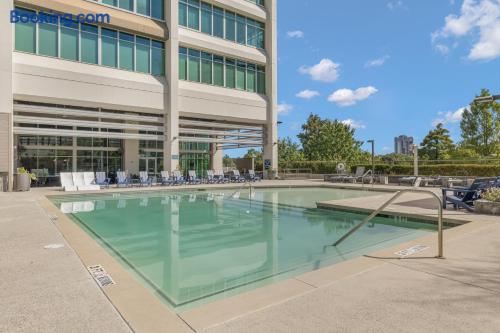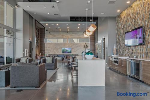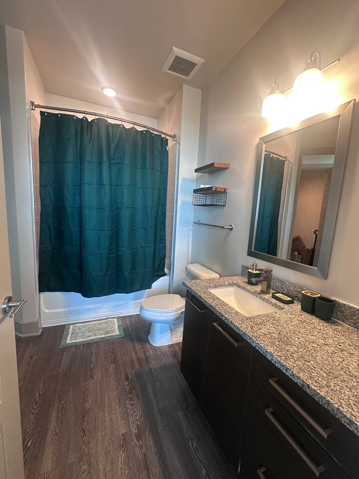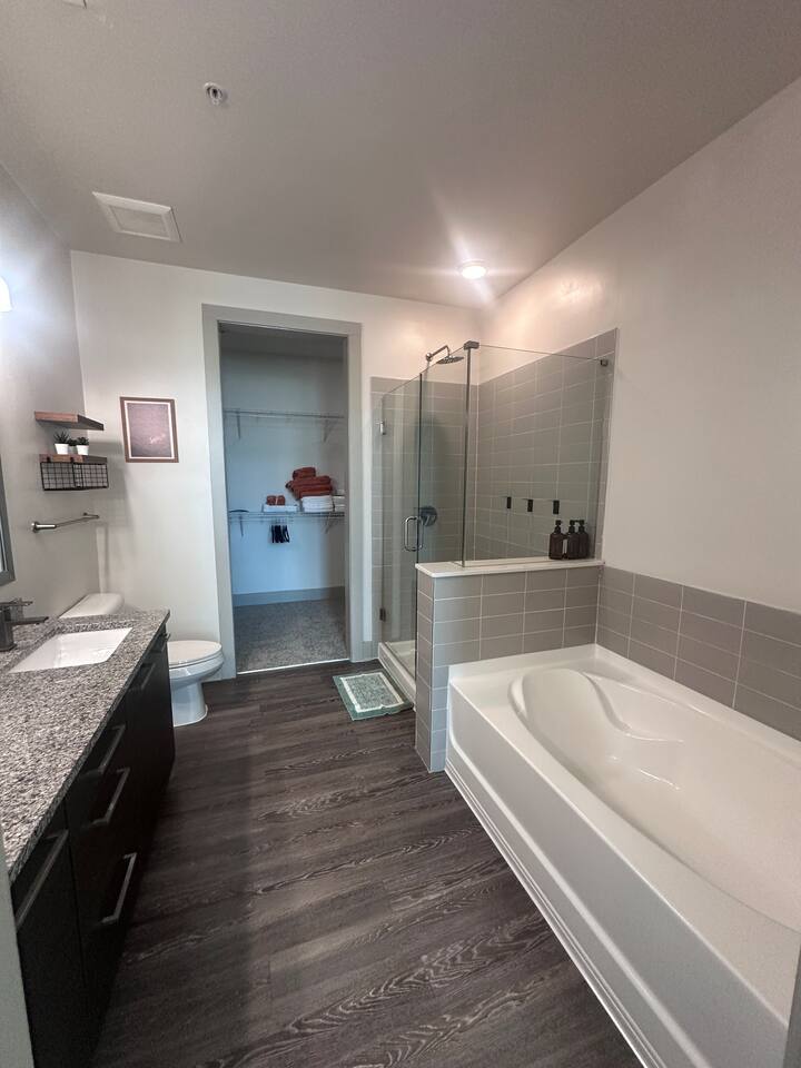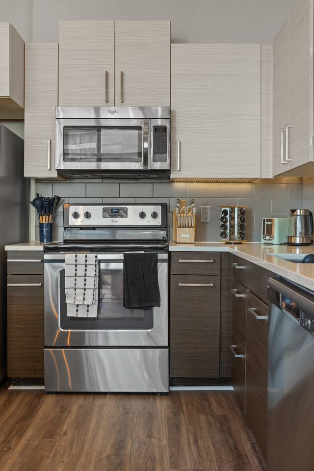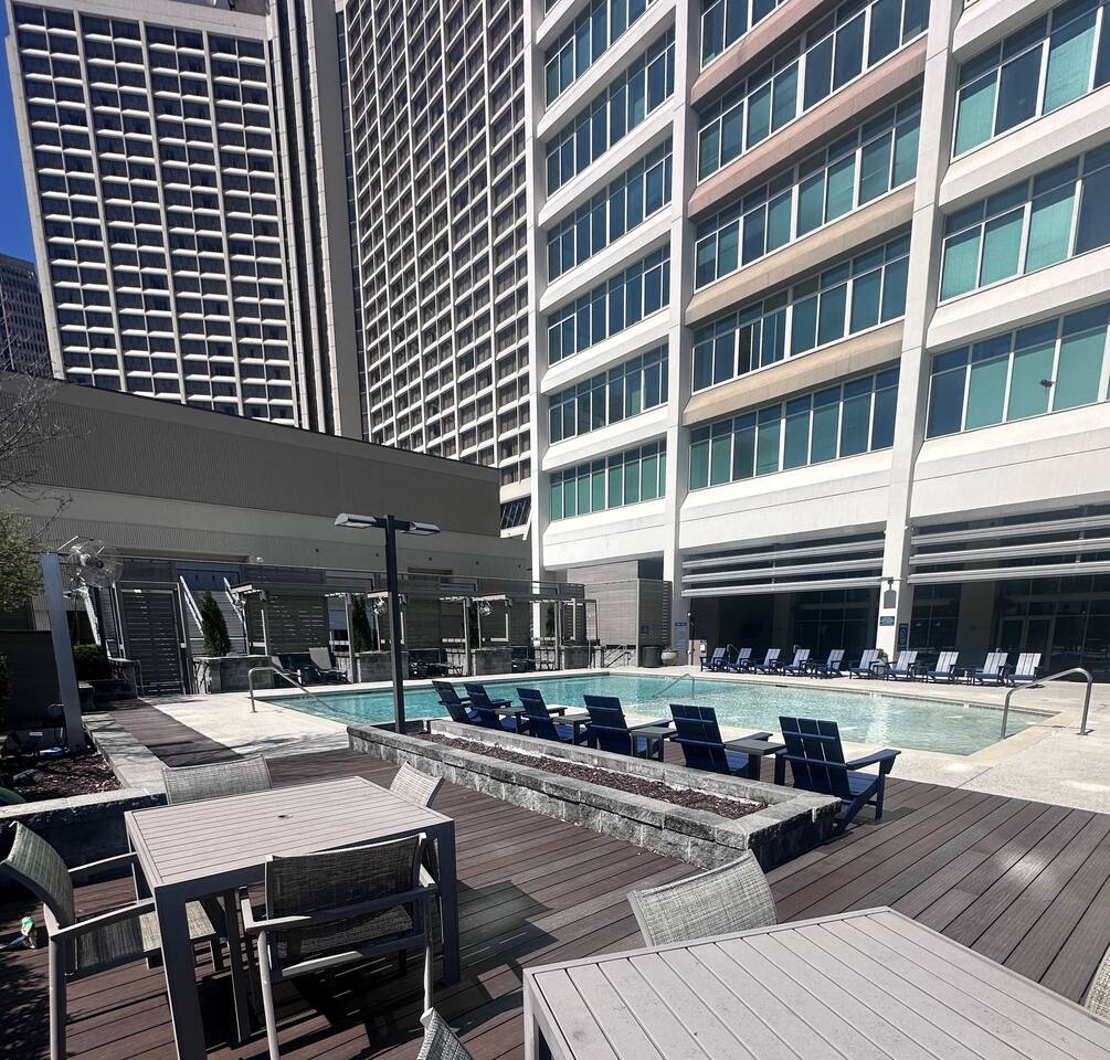 ✔ Free High-speed WiFi ✔ Self-check-in and check out via SmartLock. ✔ Instant communication and friendly support. ✔ Kitchenware you can use to cook your favorite meals. ✔ Centralized AC and Heating. ✔ Guests have full access to the entire apartment, in-unit laundry and all community amenities. ✔ Full access to the lobby and shared seating areas, state-of-the-art on-site fitness center, pool, lounge, patio, BBQ, etc. ✔ Lobby coffee and tea station (bring your own cup). ✔There is paid underground parking that is shared with the Hilton Hotel. (Download iPark app). Full parking instructions will be provided after booking. ✔ Convenient access to major roads and highways. ✔ The building is equipped with noise-monitoring devices and security cameras to ensure a safe and comfortable stay. ✔ This unit has a Blink doorbell camera for your safety and security and a noise and smoke monitor for your health and safety
