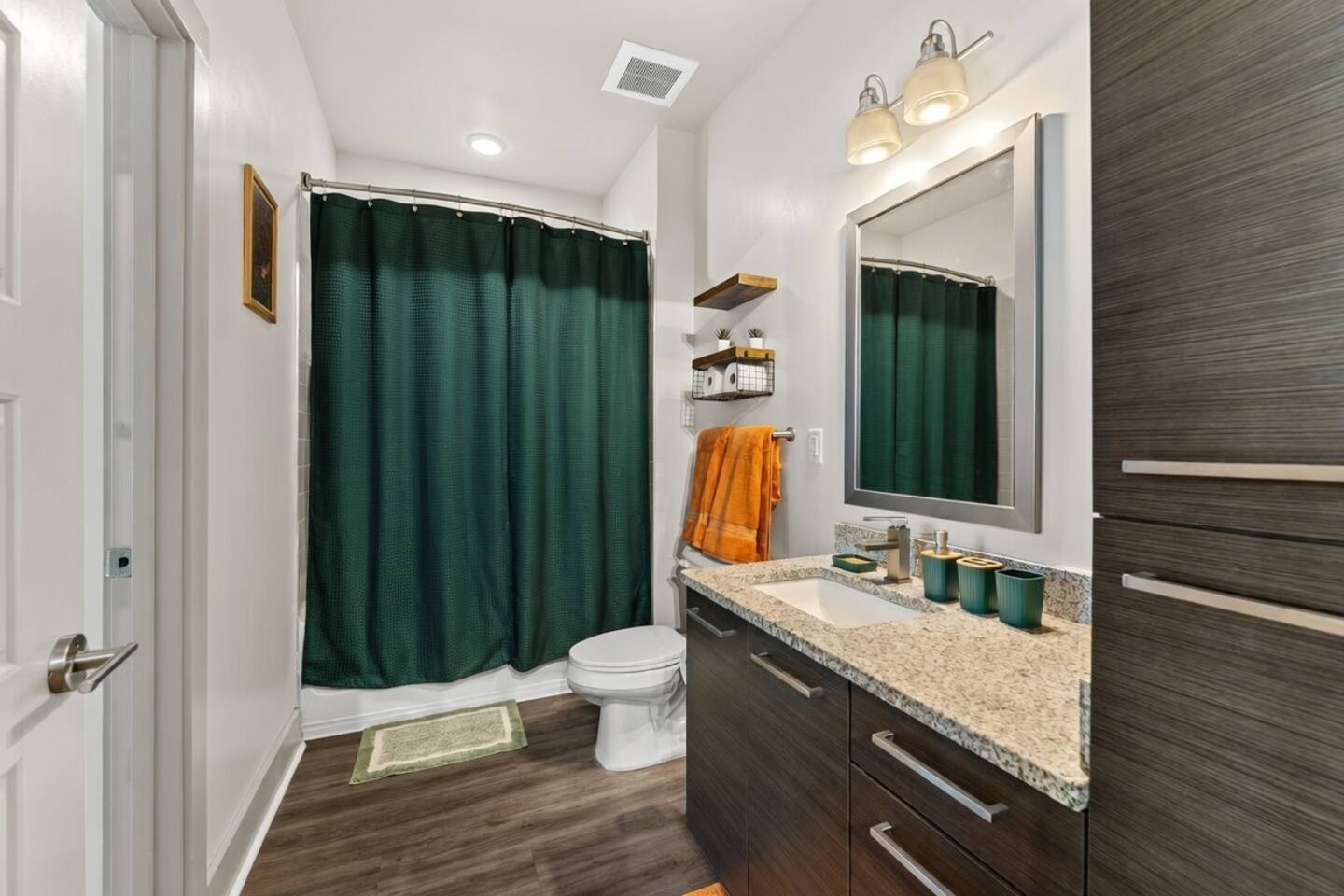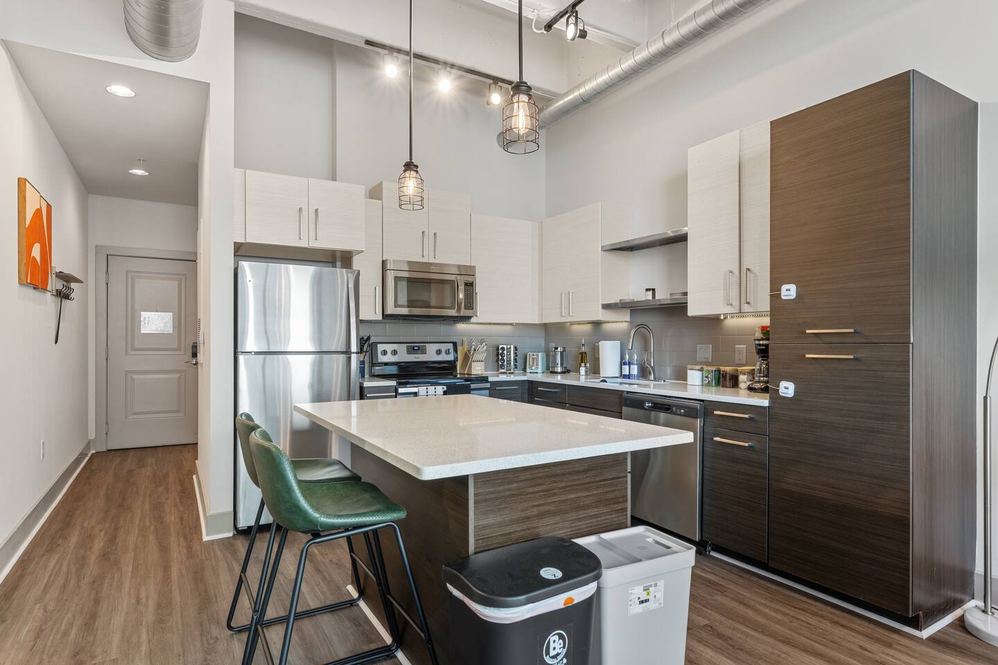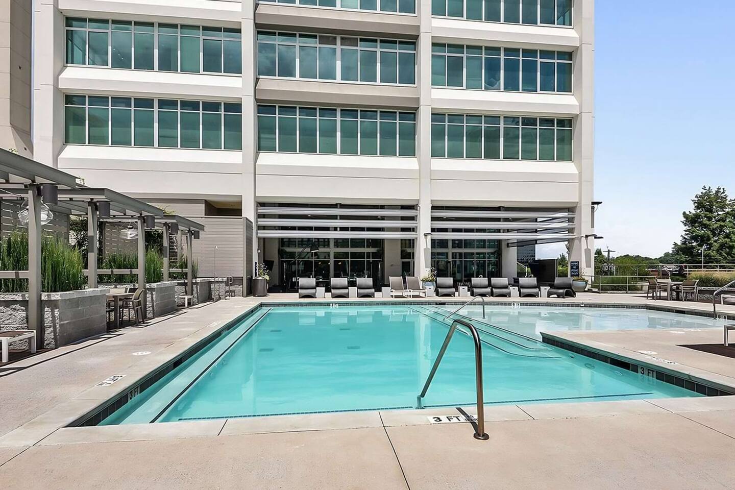 ✔ Free High-speed WiFi ✔ Self-check-in and check out via SmartLock. ✔ Instant communication and friendly support. ✔ Kitchenware you can use to cook your favorite meals. ✔ Centralized AC and Heating. ✔ Guests have full access to the entire apartment, in-unit laundry and all community amenities. ✔ Full access to the lobby and shared seating areas, state-of-the-art on-site fitness center, pool, lounge, patio, BBQ, etc. ✔ Lobby coffee and tea station (bring your own cup). ✔There is paid underground parking that is shared with the Hilton Hotel. (Download iPark app). Full parking instructions will be provided after booking. ✔ Convenient access to major roads and highways. ✔ The building is equipped with noise-monitoring devices and security cameras to ensure a safe and comfortable stay. ✔ This unit has a Blink doorbell camera for your safety and security and a noise and smoke monitor for your health and safety