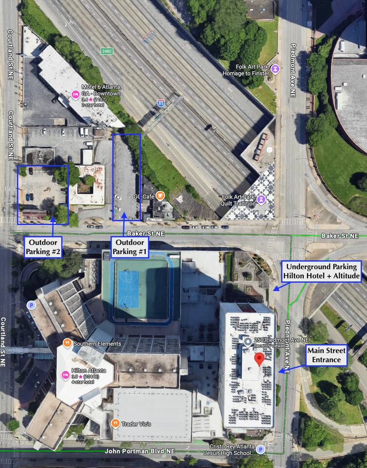 Located at 250 Piedmont Ave NE, you are in the heart of downtown Atlanta, making it incredibly easy to explore the city without needing a car. Many of Atlanta’s top attractions, restaurants, and entertainment spots are just a short walk, rideshare, or train ride away. Getting Around: 🚶 Walkable Location – Many downtown attractions, restaurants, and parks are within a short walking distance. 🚇 Public Transit Access – Quick access to the MARTA rail and bus network for easy travel across the city. 🚗 Rideshare Friendly – Fast pickups from Uber and Lyft throughout the area. ✈️ Airport Access – Direct train access via MARTA to Hartsfield–Jackson Atlanta International Airport. 🚴 Bike & Scooter Options – Shared bikes and e-scooters are widely available for quick trips around downtown. 🚙 Highway Connectivity – Easy access to major highways including Interstate 75, Interstate 85, and Interstate 20 for convenient driving across the metro area.