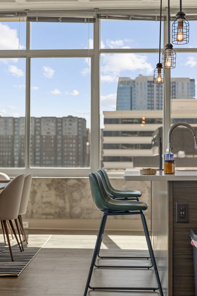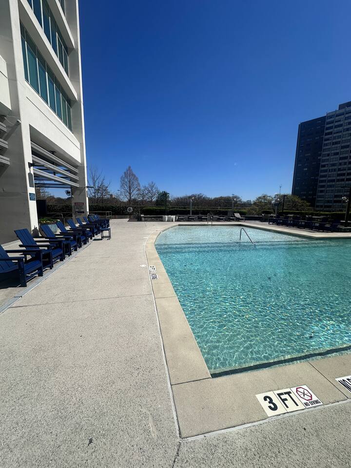 Stay in the heart of ⭐Downtown Atlanta⭐ ✔ 1.9 km (1.3mi) 20-min walk to FIFA World Cup 2026 (Mercedes-Benz Stadium) ✔This 5-person spacious luxury high-rise condo offers skyline views, 1 King bed, 1 Queen bed, 2 baths, fast Wifi, resort-style amenities-pool, fitness center, yoga/indoor cycling room ✔Walk to major attractions ✔Perfect for World Cup visitors, concerts, Falcons games, couples, and business travelers seeking a luxury stay in Atlanta’s most walkable district.