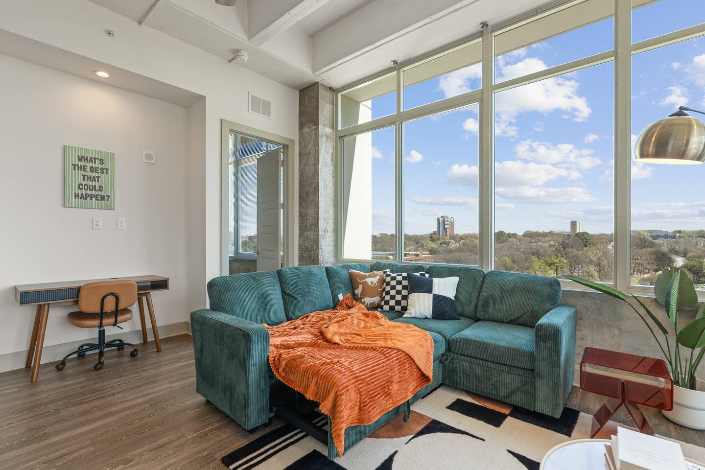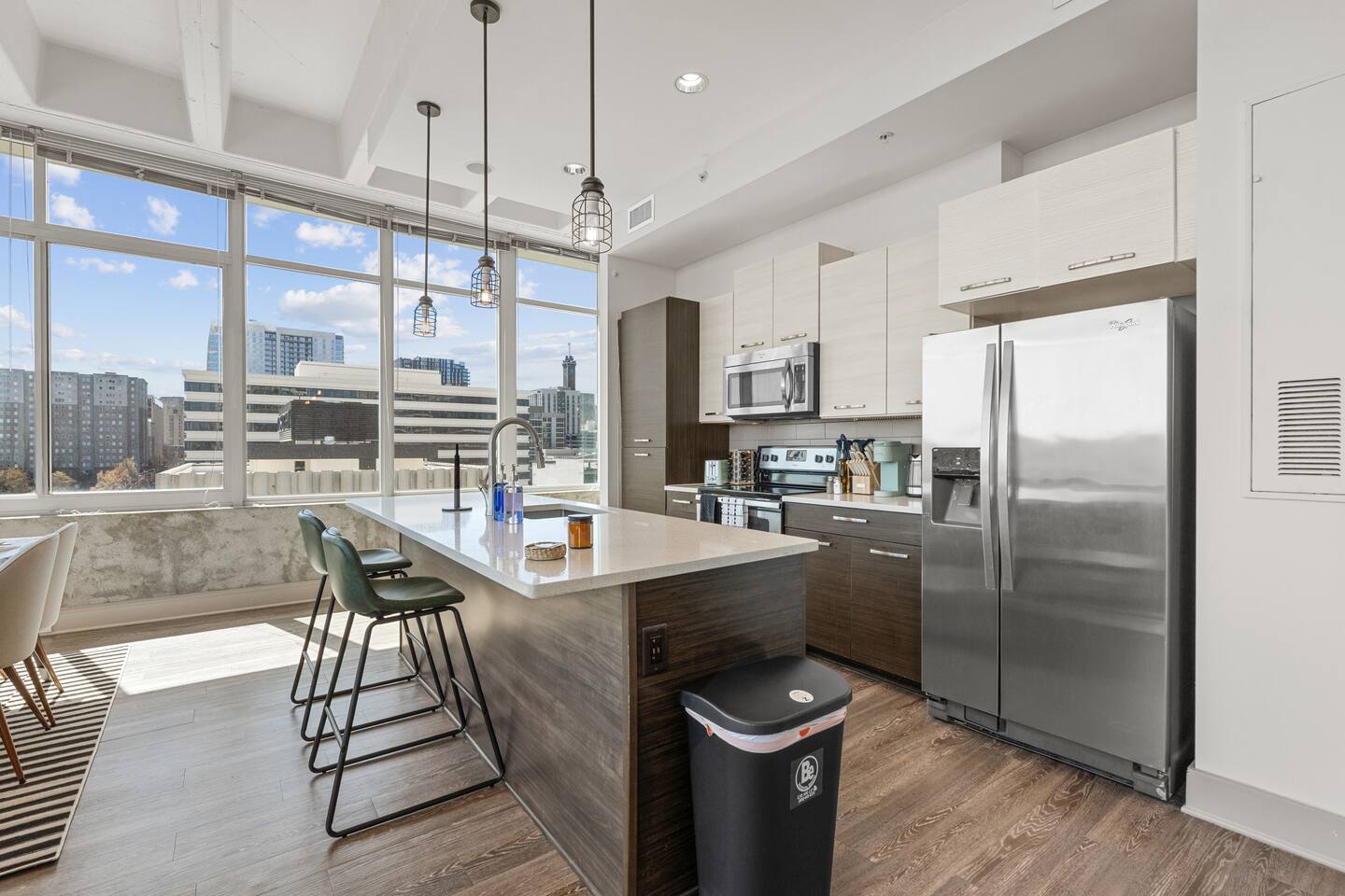 IMPORTANT PLEASE READ CAREFULY: ✔ Paid underground parking available (guest responsible for fees — not included in booking). Numerous public garages nearby. ✔ A fully refundable security deposit of $300 is required before check-in instructions are released. This will be collected as a separate payment after the reservation is confirmed. It will be refunded within 48 hours after checkout if the KeyFob is returned and the unit is left in good condition with no damages, missing items, rule violations, or excessive cleaning. ✔ Photo IDs are required for all adults staying in the unit. 🏢 Luxury Building Highlights & Amenities ✔This modern 2-bedroom 2-bathroom luxury condo features large surround 8ft windows, a bright open layout, and stunning downtown views. ✔The main bedroom includes a King-size bed with premium linens, perfect for relaxing after a day exploring the city or attending a match. ✔The second bedroom contains a Queen-size bed with its own separate full bathroom. ✔The living room offers a comfortable sofa-bed with a 55” Smart TV, ideal for both relaxing or enjoying your Netflix as you chill, or for your 5th guest. ✔The fully equipped kitchen includes everything needed for quick meals or extended stays. ✔Designed for comfort, convenience, and style, this space provides the perfect home base during your Atlanta stay. ✔[Please Note: There is paid underground parking that is shared with the Hilton Hotel. (Download iParkit app). Full parking instructions will be provided after booking.] ⭐ Highlights & Amenities Overview ✔ 20-minute walk to FIFA World Cup Mercedes-Benz Stadium ✔ Downtown Atlanta skyline views ✔ Paid underground parking (guest responsible for fees - not included as part of booking) ✔ Bedroom 1: King-size bed with premium bedding; dedicated work desk; walk-in closet; private bathroom ✔ Bedroom 2: Queen-size bed, walk-in closet and separate bathroom ✔ King-size bed with premium bedding ✔ Travel Crib/Playpen and high chair available for $50 total ✔ 55” 4K Smart TV + streaming services ✔ High-speed Wi-Fi ✔ Dedicated workspace ✔ Fully equipped kitchen ✔ Coffee maker + Keuring + coffee essentials for the perfect brew ✔ Toaster, cookware & dining essentials ✔ In-unit washer & dryer and dishwasher ✔ Wine refrigerator ✔ Central A/C & heating ✔ Contactless self check-in ✔ Premium towels & linens ✔ Professionally cleaned before every stay ✔ Resort-style terrace pool with skyline views ✔ 24/7 fitness center ✔ Yoga & indoor cycling studio ✔ Outdoor kitchen & grilling stations ✔ Game lounge with pool table and shuffle board ✔ Podcast / creative studios ✔ Secure building entry