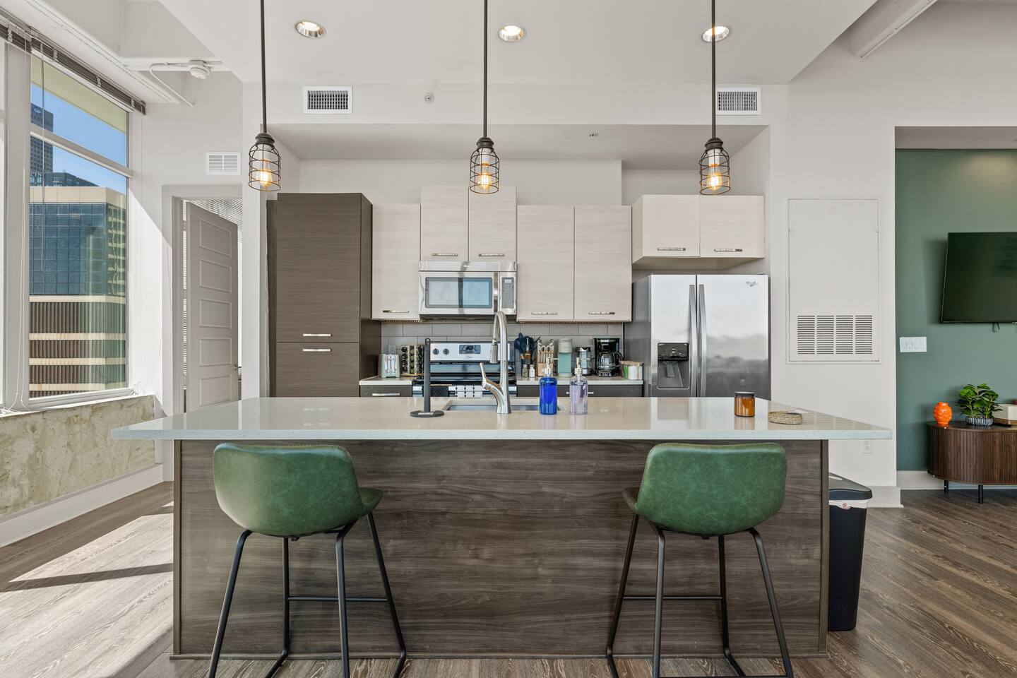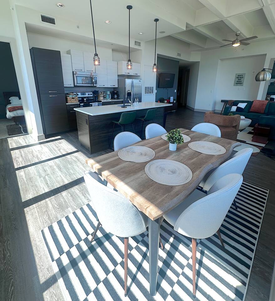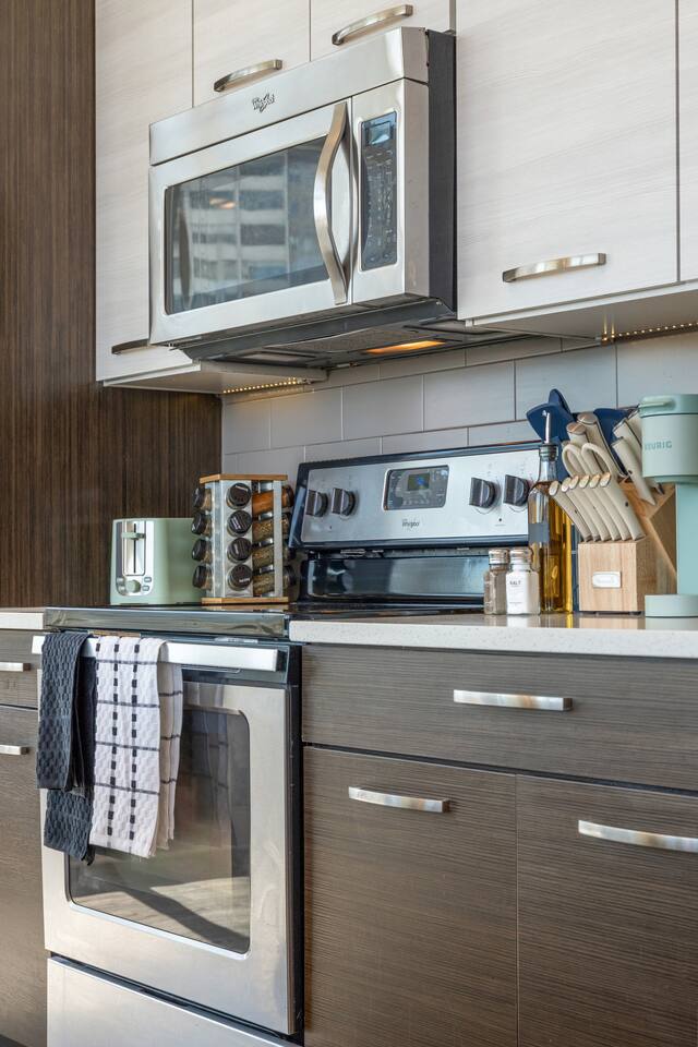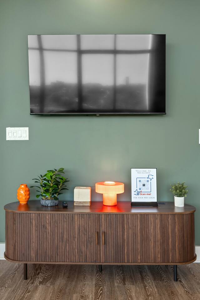 ✔ Free High-speed WiFi ✔ Self-check-in and check out via SmartLock. ✔ Instant communication and friendly support. ✔ Kitchenware you can use to cook your favorite meals. ✔ Centralized AC and Heating. ✔ Guests have full access to the entire apartment, in-unit laundry and all community amenities. ✔ Full access to the lobby and shared seating areas, state-of-the-art on-site fitness center, pool, lounge, patio, BBQ, etc. ✔ Lobby coffee and tea station (bring your own cup). ✔There is paid underground parking that is shared with the Hilton Hotel. (Download iPark app). Full parking instructions will be provided after booking. ✔ Convenient access to major roads and highways. ✔ The building is equipped with noise-monitoring devices and security cameras to ensure a safe and comfortable stay. ✔ This unit has a Blink doorbell camera for your safety and security and a noise and smoke monitor for your health and safety