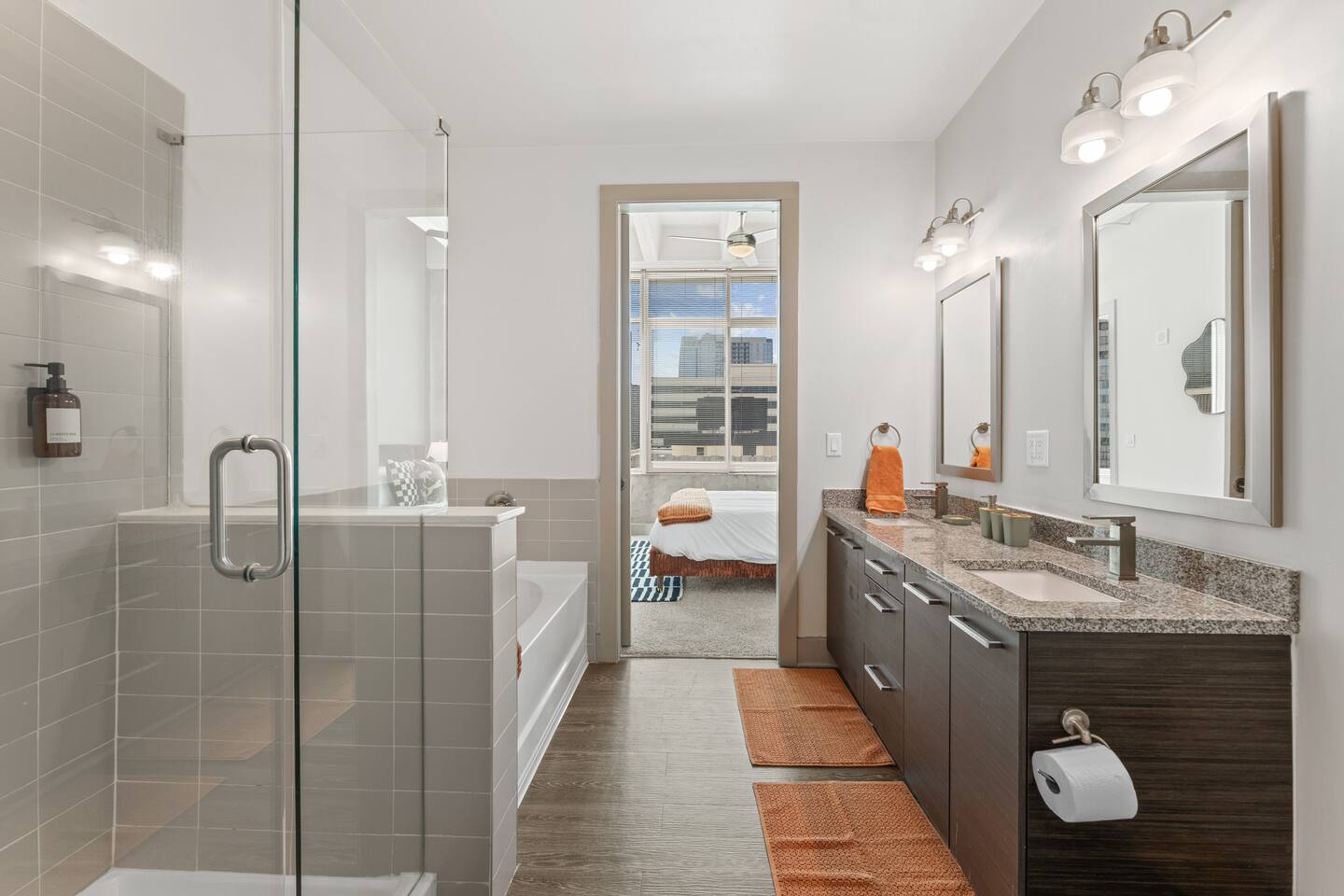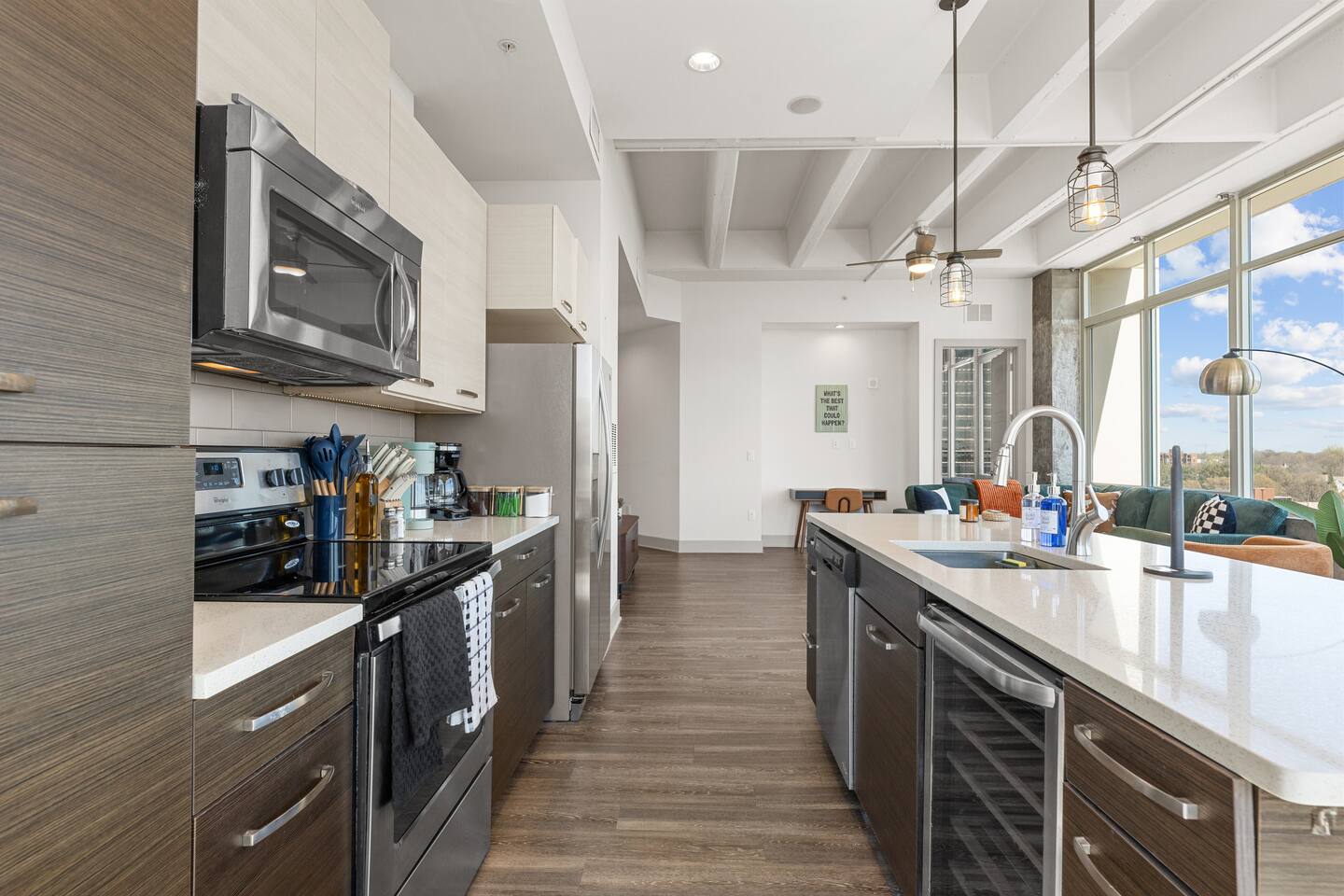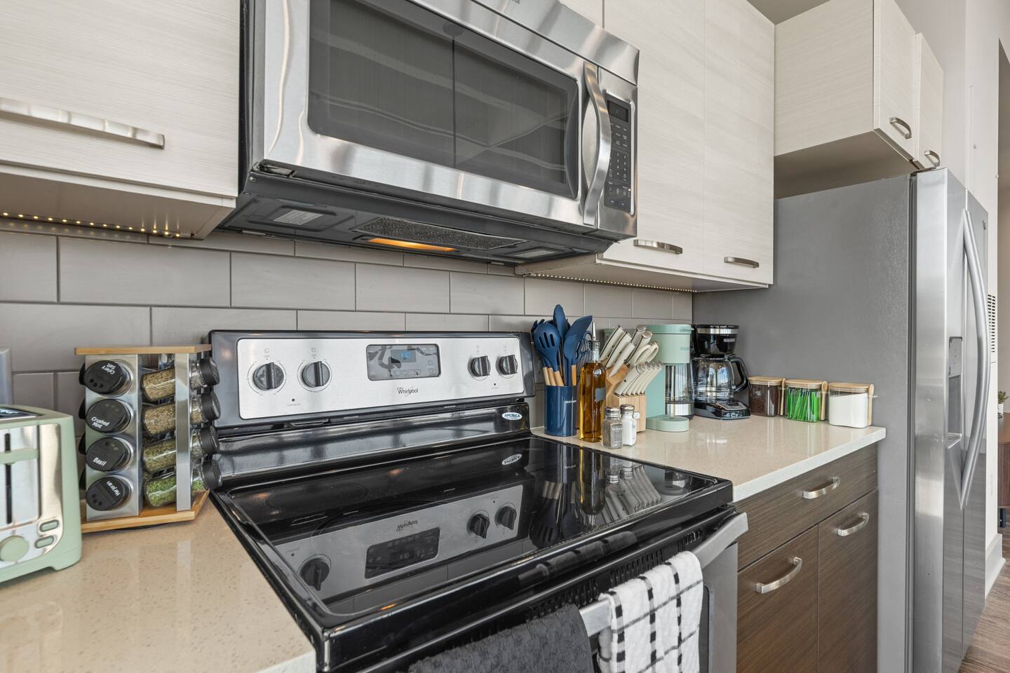 ✔ Free High-speed WiFi ✔ Self-check-in and check out via SmartLock. ✔ Instant communication and friendly support. ✔ Kitchenware you can use to cook your favorite meals. ✔ Centralized AC and Heating. ✔ Guests have full access to the entire apartment, in-unit laundry and all community amenities. ✔ Full access to the lobby and shared seating areas, state-of-the-art on-site fitness center, pool, lounge, patio, BBQ, etc. ✔ Lobby coffee and tea station (bring your own cup). ✔There is paid underground parking that is shared with the Hilton Hotel. (Download iPark app). Full parking instructions will be provided after booking. ✔ Convenient access to major roads and highways. ✔ The building is equipped with noise-monitoring devices and security cameras to ensure a safe and comfortable stay. ✔ This unit has a Blink doorbell camera for your safety and security and a noise and smoke monitor for your health and safety