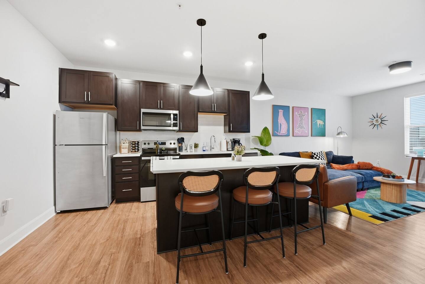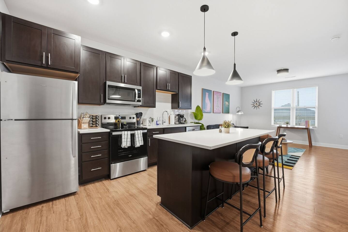 🌇 Experience modern luxury at our Lusso unit in Columbus’s Italian Village. This luxury apartment features an open floor plan, quartz counters, and premium finishes. Perfect for business travel or getaways, enjoy top amenities: a resort pool, 24-hour fitness with hot yoga, EV charging, and a rooftop SkyDeck. Minutes from Downtown Columbus, Short North nightlife, and top hospitals. Includes free parking. Book your premier Columbus stay today!